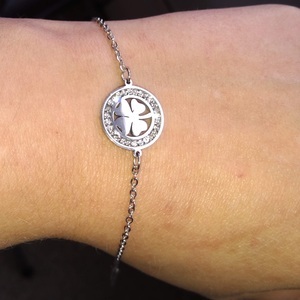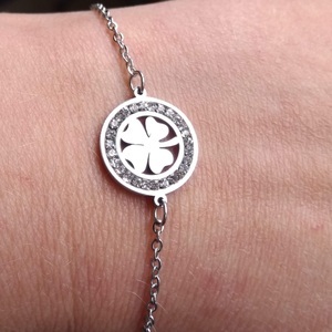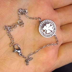 Браслет серебряный клевер с кристаллами Lucky Clover Crystal Bracelet Silver - украшение для повседневного ношения, выполнено в стиле минимализм, длина 16 см. с 5 см. удлинителем.