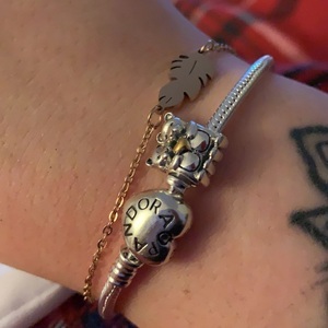 Браслет на тонкой цепочке якорного плетения с изящной подвеской-коннектором в виде перышка птицы.