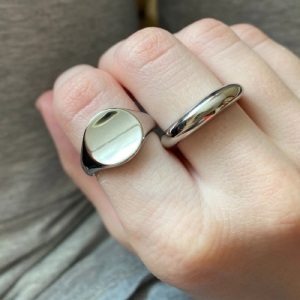 Полукруглое кольцо с расширяющейся центральной частью и открытыми закругленными концами. Украшение можно носить как отдельно, так и в сочетании с другими кольцами в этом же стиле.