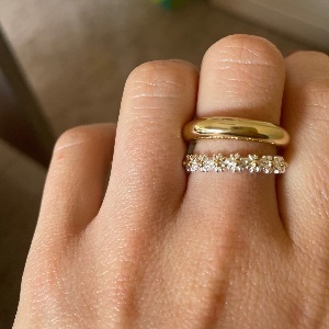Полукруглое кольцо с расширяющейся центральной частью и открытыми закругленными концами. Украшение можно носить как отдельно, так и в сочетании с другими кольцами в этом же стиле.