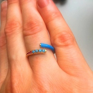 Кольцо золочёное с эмалью Adjustable Ring Colored Сrystals Blue Enamel Gold - универсальное украшение выполнено в стиле минимализм, изящно смотрится на руке и подходят для офиса, повседневного ношения и вечеринок.