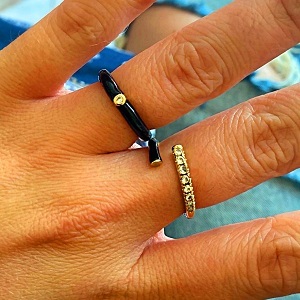 Кольцо золочёное с эмалью Adjustable Ring Crystals Black Enamel Gold - универсальное украшение выполнено в стиле минимализм, изящно смотрится на руке и подходят для офиса, повседневного ношения и вечеринок.
