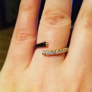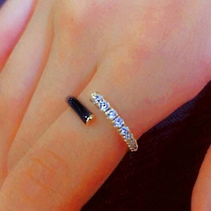 Кольцо с литой шинкой плавно переходящей в две вставки, с одной стороны в чёрную непрозрачную глянцевую эмаль, с другой в дорожку переливающихся австрийских кристаллов. Кольцо безразмерное, удобно регулируется под нужный размер.