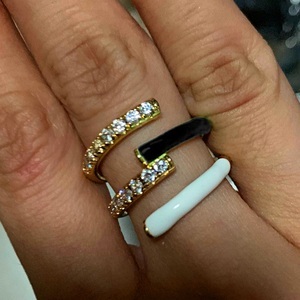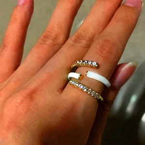 Кольцо золочёное с эмалью Adjustable Ring Crystals White Enamel Gold - универсальное украшение выполнено в стиле минимализм, изящно смотрится на руке и подходят для офиса, повседневного ношения и вечеринок.