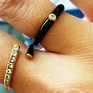 Кольцо золочёное с эмалью Black Enamel Adjustable Ring Crystal Gold - универсальное украшение выполнено в стиле минимализм, изящно смотрится на руке и подходят для офиса, повседневного ношения и вечеринок.