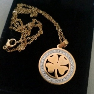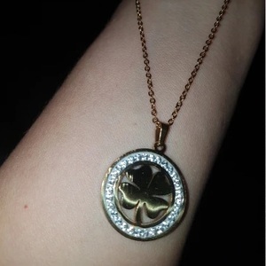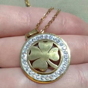 Подвеска золочёная клевер с кристаллами Necklace Lucky Clover Crystal Gold - украшение с оптимальной длиной Princess (Принцесса-45 см.) для повседневного ношения.
