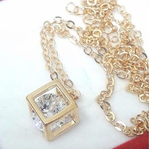 Подвеска золочёная кубик с кристаллом Necklace Crystal Cube KC Gold