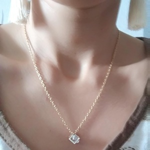 Подвеска золочёная кубик с кристаллом Necklace Crystal Cube KC Gold - лаконичное украшение для повседневного ношения, выполнено в стиле минимализм, изготовлено из высококачественного сплава металлов с золотым покрытием 750 пробы, сплав не содержащих никель, свинец, кадмий.