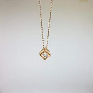 Тонкая нежная цепочка якорного плетения с изящной подвеской в виде золотого кубика с помещенным внутрь блестящим, прозрачным, белым кристаллом циркона.