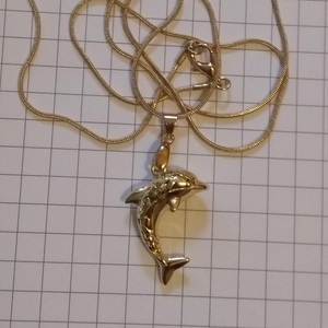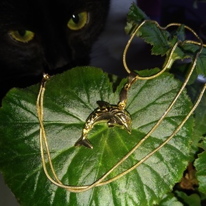 Изящный 3D кулон в виде объемного золочёного дельфина на спинке детализированный узор нежных завитков. Кулон на 50 см. тонкой, но прочной цепочке змейка-тондо, застежка карабин.