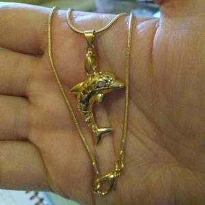 Подвеска золочёная дельфин Dolphin Necklace Gold