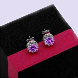 Серьги-пусеты серебряные с кристаллами Purple Crystal Princess Crown Earrings Silver- изящное украшение как для повседневного ношения, так и для торжественных мероприятий и светских вечеринок.