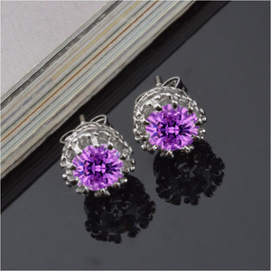 Серьги-пусеты серебряные с кристаллами Purple Crystal Princess Crown Earrings Silver