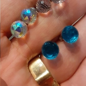 Серьги-пусеты серебряные с кристаллами Crystal Ball Blue Earrings Silver