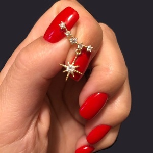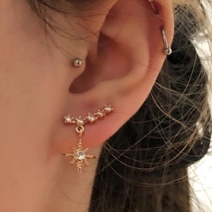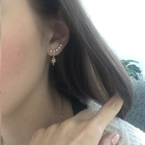 Основной элемент пусет изящные подвески в виде восьмиконечной вифлеемской звезды размером 1x1 см. В центре звёзд расположены прозрачные фианиты.
